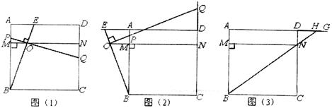 (3)如图(3),连结并延长BN交AD的延长线DG于H,若点E分别在线段DH和射线HG上时,判断AE、MP、NQ之间的数量关系,请直接写出结论.