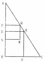 26.(本小题满分10分)如图:在Rt△ABC中,∠B=90°,BC=4cm,AB=8cm,D、E、F分别为AB、AC、BC边上的中点。若P为AB边上的一个动点,PQ∥BC,且交AC于点Q,以PQ为一边,在点A的异侧作正方形PQMN,记正方形PQMN与矩形EDBF的公共部分的面积为