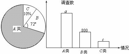 15.一项调查统计情况如图所示,本次抽样的样本容量是__________.图中c=_________.若被调查的对象占总体数的20%,请根据样本估计总体中A类对应的数值为 .