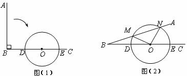 (2)若射线BA绕点B按顺时针方向旋转与⊙O相交于M、N两点(如图(2)),MN=