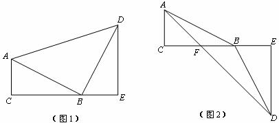 如图1,是美国总统Garfield于1876年给出的一种验证勾股定理的办法。Rt△ACB与Rt△DEB全等,点C、B、E共线,连接AD,可以证明△ABD是等腰三角形。如图2,Rt△ACB与Rt△DEB全等,点C、B、E共线,连接AD,交BC于点F,请你找出图2中的所有等腰直角三角形(不再添加线,不再添加字母),并给出证明。