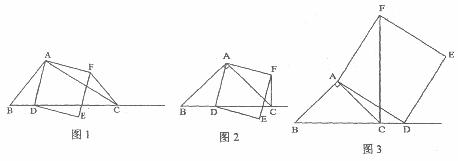 23.如图1,在△ABC中,∠ACB为锐角,D为射线BC上一点,连接AD,以AD为一边直在AD的右侧作正方形ADEF。解答下列问题: