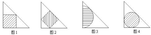 12.如图,甲、乙、丙、丁四位同学从四块全等的等腰直角三角形纸板上裁下四块不同的纸板(阴影部分),他们的具体裁法如下:甲同学:如图1所示裁下一个正方形,面积记为S1;乙同学:如图2所示裁下一个正方形,面积记为S2;丙同学:如图3所示裁下一个半圆,使半圆的直径在等腰直角三角形的直角边上,面积记为S3;丁同学:如图4所示裁下一个内切圆,面积记为S4.则下列判断正确的是