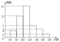 某中学对全校学生60秒跳绳的次数进行了统计,全校平均次数是100次.某班体育委员统计了全班50名学生60秒跳绳的成绩,列出的频数分布直方图如下(每个分组包括左端点,不包括右端点):