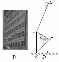 腾飞中学在教学楼前新建了一座“腾飞”雕塑(如图①).为了测量雕塑的高度,小明在二楼找到一点C,利用三角板测得雕塑顶端A点的仰角为