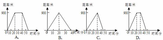 7.小明外出散步,从家走了20分钟后到达了一个离家900米的报亭,看了10分钟的报纸然后用了15分钟返回到家.则下列图象能表示小明离家距离与时间关系的是( )