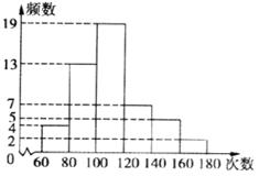 19.(本题满分9分)某中学对全校学生60秒跳绳的次数进行了统计,全校平均次数是100次.某班体育委员统计了全班50名学生60秒跳绳的成绩,列出的频数分布直方图如图所示(每个分组包括左端点,不包括右端点).