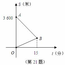 21.某天,小明来到体育馆看球赛,进场时,发现门票还在家里,此时离比赛开始还有25分钟,于是立即步行回家取票.同时,他父亲从家里出发骑自行车以他3倍的速度给他送票,两人在途中相遇,相遇后小明立即坐父亲的自行车赶回体育馆.下图中线段