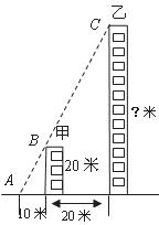 14.如图,甲、乙两楼相距20米,甲楼高20米,小明站在距甲楼10米的