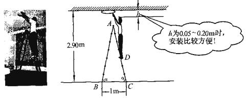 20.(9分)如图所示,电工李师傅借助梯子安装天花板上距地面2 .90m的顶灯.已知梯子由两个相同的矩形面组成,每个矩形面的长都被六条踏板七等分,使用时梯脚的固定跨度为1m.矩形面与地面所成的角α为78°.李师傅的身高为l.78m,当他攀升到头顶距天花板0.05-0.20m时,安装起来比较方便.他现在竖直站立在梯子的第三级踏板上,请你通过计算判断他安装是否比较方便?
