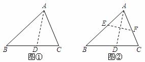 沿过点A的直线折叠,使得AC落在AB边上,折痕为AD,展开纸片(如图①);再次折叠该三角形纸片,使点A和点D重合,折痕为EF,展平纸片后得到