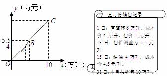 (万升)之间函数关系的图象如图中折线所示,该加油站截止到13日调价时的销售利润为4万元,截止至15日进油时的销售利润为5.5万元.(销售利润=(售价-成本价)×销售量)