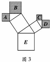 7.图3是一株美丽的勾股树,其中所有的四边形都是正方形,所有的三角形都是直角三角形.若正方形A、B、C、D的边长分别是3、5、2、3,则最大正方形E的面积是
