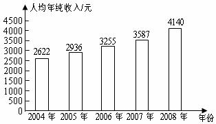 ;③若按2008年人均年纯收入的增长率计算,2009年人均年纯收入将达到