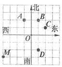 3.如图,小明从点O出发,先向西走40米,再向南走30米到达点M,如果点M的位置用(-40,-30)表示,那么(10,20)表示的位置是( )