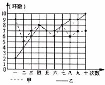 28.(8分)某市射击队甲、乙两位优秀队员在相同的条件下各射靶10次,每次射靶的成绩情况如下图所示:
