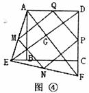 (3)如图④,在(2)的基础上,连接AE和EF,若点M、N、P、Q分别为AE、EF、FD、AD的中点,请判断四边形MNPQ是“矩形、菱形、正方形、等腰梯形”中的哪一种,并写出证明过程。