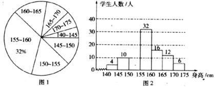 (3)在统计图l中,求“身高在145-150 cm部分”的扇形所对应的圆心角的度数.