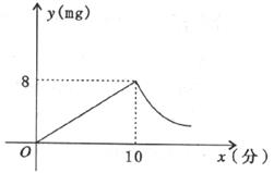 成反比例(如下图所示)。现测得药物10分钟燃完,此时教室内每立方米空气含药量为8mg,根据以上信息解答下列问题: