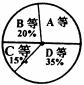 7.老师将某班一次数学测试成绩分为A、B、C、D四个等级,绘制成如下图所示的扇形统计图,则A等级所占的百分比为