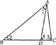 16.如图所示,D是△ABC边上一点,且∠1=∠2,∠3=∠4,∠BAC=63°,则∠DAC=____________度。