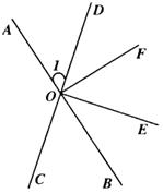 如图,直线AB、CD相交于O,OE⊥CD于O,OF⊥AB于O,∠1=65°,求∠BOE的度数.