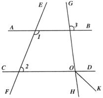 已知:如图,∠1+∠2=180°,∠3=100°,OK平分∠DOH,求∠KOH的度数.