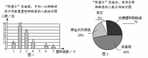 (1)补全图1,“限塑令”实施前,如果每天约有3000人次到该超市购物.根据这100位顾客平均一次购物使用塑料购物袋的平均数,估计这个超市每天需要为顾客提供多少个塑料购物袋?