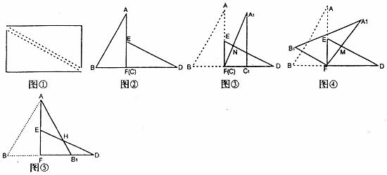 (4)将图②中的△ABF沿直线AF翻折到图⑤的位置,AB1交DE于H,请你猜想线段AH、DH有怎样的数量关系?并证明你的猜想。