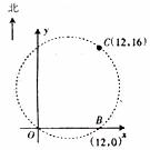 在某张航海图上,标明了三个观测点的坐标为O(0,0),B(12,0),C(12,16),由三个观测点确定的圆形区域是海洋生物保护区,如下图所示。