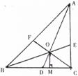 如下图,已知O点为△ABC的三条角平分线AD、BE、CF的交点,过O点作OM⊥BC于M,试比较∠BOD与∠COM的大小,并说明理由。
