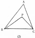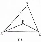 (1)如上图(1),∠A=60°,∠B、∠C的平分线交于点P,求∠BPC的度数。
