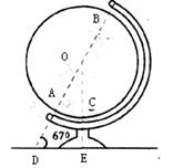 如图,点A、B为地球仪的南、北极点,直线AB与放置地球仪的平面交于点D,所成的角度约为67°,半径OC所在的直线与放置平面垂直,垂足为点E。DE=15cm,AD=14cm.求半径OA的长.(精确到0.1cm)