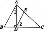 3.如下图所示,AD⊥BC于D,DE∥AB,则∠1与∠2的关系是