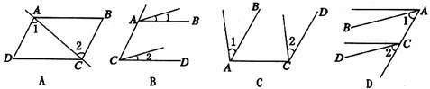 4.如下图所示,下列各图中,∠1=∠2,能判断AB∥CD的是