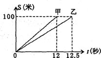 的关系如下图所示,那么由此可以知道:这是一次__________米的赛跑,甲、乙两人先到终点的是__________;乙在这次赛跑中的平均速度为__________。