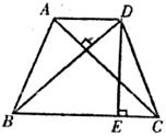 36.如下图,已知等腰梯形ABCD中,AD∥BC,对角线AC⊥BD,AD=3cm,BC=7cm,DE⊥BCE,求DE的长。(6分)