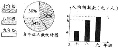 21.(8分)某中学七到九年级共2850人,各年级的人数比例如下图(左)所示,在四川汶川大地震捐款的情况统计如下图(右)所示.