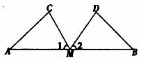 21.如图:M是AB中点,MC=MD.∠1=∠2。求证AC=BD