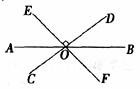 22.如图,直线AB、CD、EF相交于点O,已知EF⊥CD,垂足为点O,如果∠AOD=1250,那么试求∠BOF的度数.(10分)