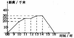 23.如图,星期天,小刚骑自行车去郊游,上午8时从家出发,16时返回家中,他离开家的距离与时间的关系可用图中的折线表示.根据图象回答下列问题:(8分)