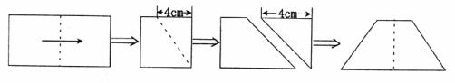 7.把长为10cm的矩形按虚线对折,再照图中虚线剪出一个直角梯形,打开得到一个等腰梯形,如果剪掉部分的面积为12cm2,则打开后梯形的周长是