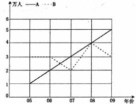 18.近年来,我县旅游业发展迅速,如图所示,A、B两旅游景点自2005年到2009年“五一”期间的旅游人数变化情况分别用实线和虚线表示,根据图示解答下列问题: