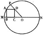 16.如上右图,已知在⊙O中,直径MN=10,正方形ABCD的四个顶点分别在半径OM、OP上以及⊙O上,并且∠POM=45°,则AB=__________。