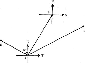 18.(8分)如下图,在某海域内有三个港口A、D、C。港口C在港口A北偏东60°方向上,港口D在港口A北偏西60°方向上.一艘船以25海里/时的速度沿北偏东30°的方向驶离A港口3小时后到达B点位置处,此时发现船舱漏水,海水以每小时48吨的速度渗入舱内。当船舱渗入的海水总量超过75吨时,船将沉入海中。同时在B处测得港口C在B处的南偏东75°方向上.若船上的抽水机每小时可将8吨的海水排出船外,问此船在B处至少应以怎样的航行速度驶向最近的港口停靠,才能保证船在抵达港口前不会沉没?(结果保留根号)并指出此时船的航行方向。