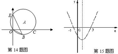 14、如图,点E(0,4),O(0,0),C(5,0)在⊙A上,BE是⊙A上的一条弦.则tan∠OBE= ________