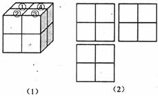 6.如图(1),用八个同样大小的小立方体搭成一个大立方体,小明从上面的四个小立方体中取走了两个后,得到的新几何体的三视图如图(2)所示,则他拿走的两个小立方体的序号是_______.(只填写满足条件的一种情况即可)