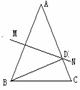 10、如图,ΔABC中,AB=AC=14cm,AB的垂直平分线MN交AC于D,ΔDBC的周长是24cm,则BC=___________.