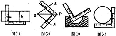 8.用一把带有刻度尺的直角尺,①可以画出两条平行的直线a和b,如下图(1);②可以画∠AOB的平分线OP,如下图(2):③可以检验工件的凹面是否为半圆,如下图(3)④可以量出一个圆的半径,如下图(4)。这四种说法正确的有