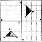 9.如下图,8×8方格纸上的两条对称轴EF、MN相交于中心点O,对△ABC分别作下列变换:①先以点A为中心顺时针方向旋转90°,再向右平移4格、向上平移4格;②先以点O为中心作中心对称图形,再以点A的对应点为中心逆时针方向旋转90°;③先以直线MN为轴作轴对称图形,再向上平移4格,再以点A的对应点为中心顺时针方向旋转90°。其中,能将△ABC变换成△PQR的是